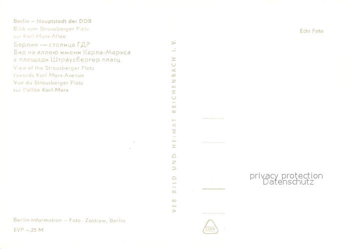 73044884 BERLIN CITY Strausberger Platz Karl Marx Allee postalisch nicht gelaufen Erhaltung siehe scans [WerneD78] KatCode: 11110011000000