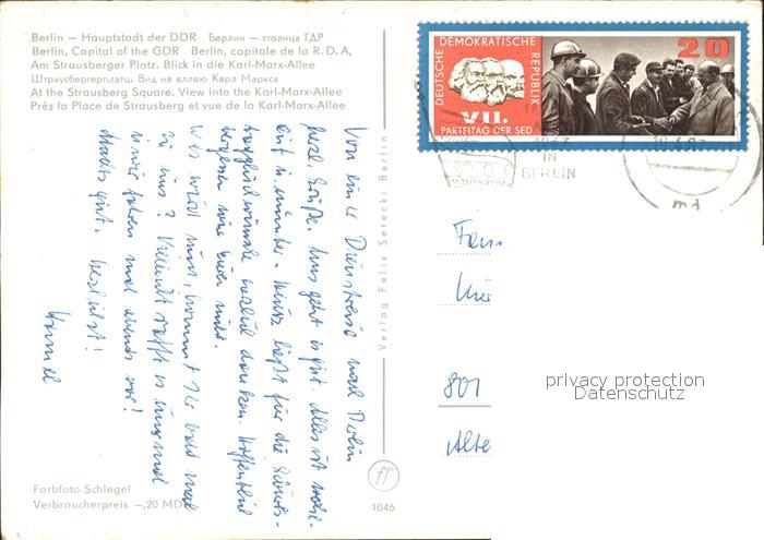 72247882 alte Postkarte BERLIN CITY Strausberger Platz Karl Marx Allee postalisch gelaufen Erhaltung siehe scans KatCode: 11110011000000