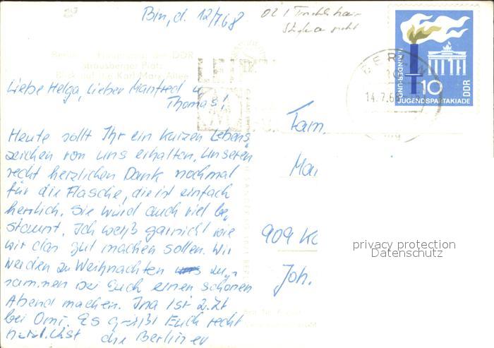 72120461 alte Postkarte BERLIN CITY Strausberger Platz Karl-Marx-Allee postalisch gelaufen Erhaltung siehe scans KatCode: 11110011000000