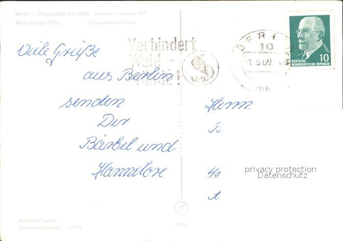 72137837 alte Postkarte BERLIN CITY Strausberger Platz Wasserspiele postalisch gelaufen KatCode: 11110011000000