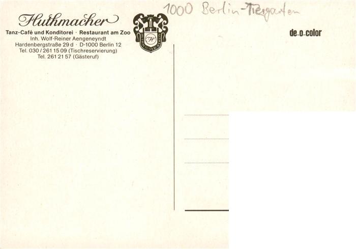 73912866 BERLIN CITY Tanz Cafe und Konditorei Huthmacher Restaurant am Zoo postalisch gelaufen Erhaltung siehe scans [FriedD77] alte Postkarte Frie Katcode 11110011000000
