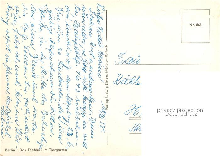 72958536 BERLIN CITY Teehaus Tiergarten postalisch nicht gelaufen Erhaltung siehe scans [PaolaD17] KatCode: 11110011000000