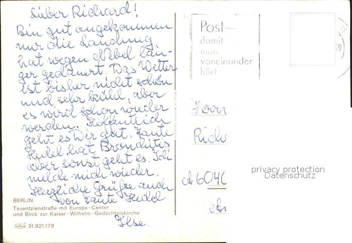72148695 alte Postkarte BERLIN CITY Teuentzienstrasse mit Europacenter postalisch gelaufen Erhaltung siehe scans KatCode: 11110011000000