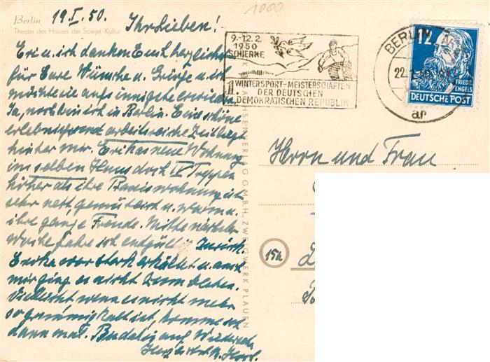 73903474 BERLIN CITY Theater des hauses der Sowjet Kultur postalisch gelaufen Erhaltung siehe scans [WerneD78] alte Postkarte Wern Katcode 11110011000000