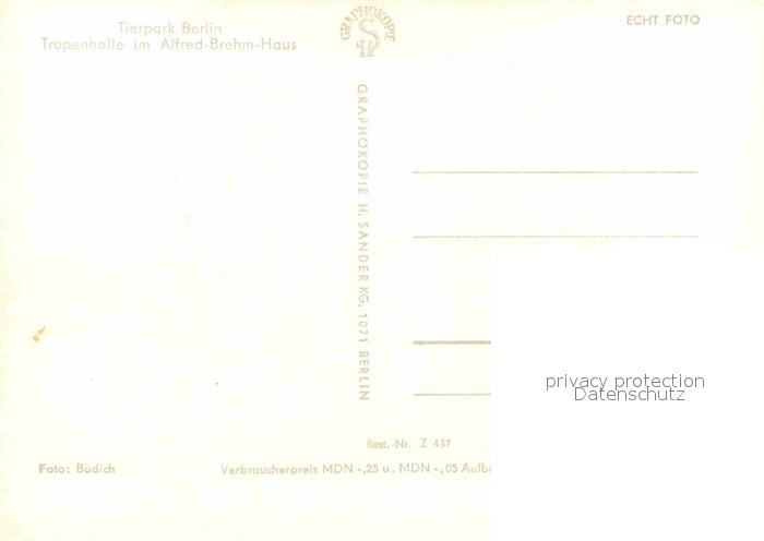 72700766 BERLIN CITY Tierpark Tropenhalle im Alfred Brehm Haus postalisch nicht gelaufen Erhaltung siehe scans [LiesaD40] KatCode: 11110011000000