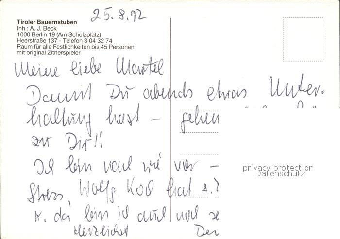 72497185 BERLIN CITY Tiroler Bauernstuben postalisch nicht gelaufen Erhaltung siehe scans KatCode: 11110011000000