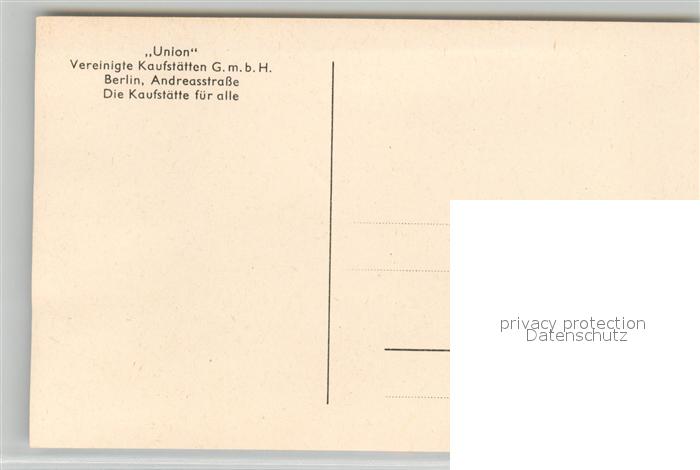 43498581 BERLIN CITY Union Vereinigte Kaufstaetten Andreasstrasse postalisch nicht gelaufen Erhaltung siehe scans [KathaD81] Kath Katcode 11110011000000