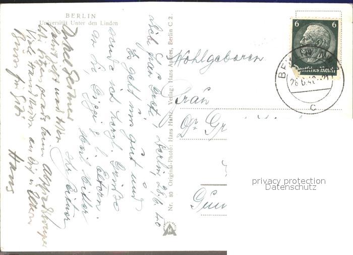 71848671 alte Postkarte BERLIN CITY Universitaet Unter den Linden postalisch gelaufen Erhaltung siehe scans KatCode: 11110011000000