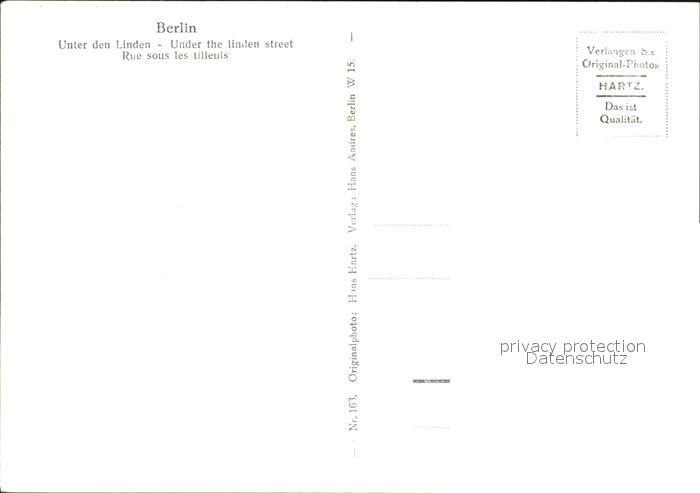 72430171 BERLIN CITY Unter den Linden postalisch nicht gelaufen Erhaltung siehe scans KatCode: 11110011000000