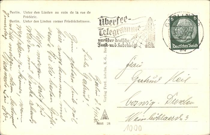 41220613 BERLIN CITY Unter den Linden postalisch gelaufen gute Erhaltung Alte Ansichtskarte Postkarte alte Postkarte Chri Katcode 11110011000000