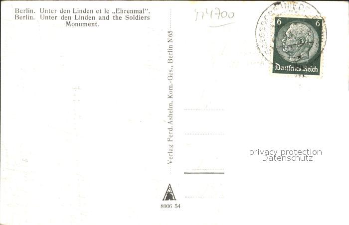 41789983 BERLIN CITY Unter den Linden Ehrenmal Monument postalisch gelaufen Erhaltung siehe scans Alte Ansichtskarte Postkarte alte Postkarte Nata Katcode 11110011000000