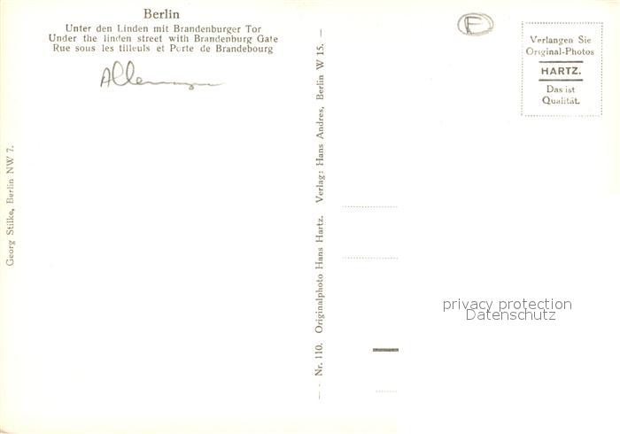 43496610 BERLIN CITY Unter den Linden mit Brandenburger Tor postalisch nicht gelaufen Erhaltung siehe scans [LiesaD40] Lies Katcode 11110011000000