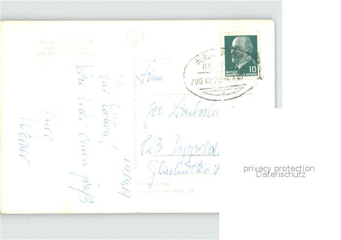 72413169 alte Postkarte BERLIN CITY Unter den Linden Rathaus Hauptstadt der DDR postalisch gelaufen Bahnpost Erhaltung siehe scans KatCode: 11110011000000