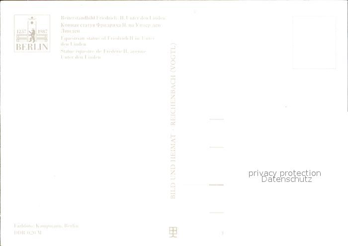 72063102 BERLIN CITY Unter den Linden Reiterstandbild Friedrich der 2. postalisch nicht gelaufen Erhaltung siehe scans KatCode: 11110011000000