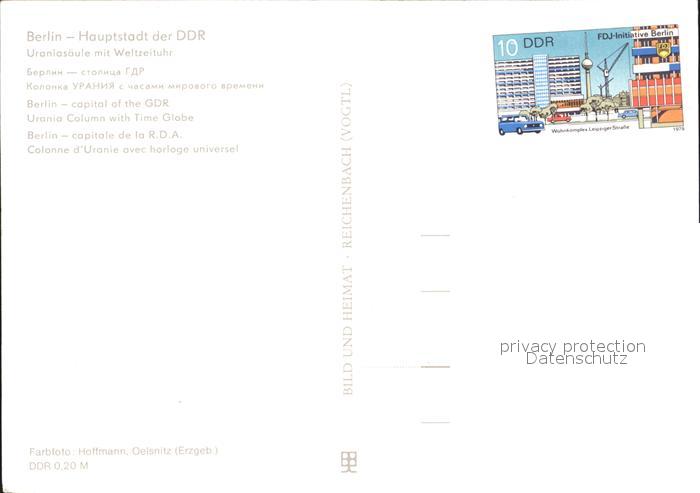 72116702 BERLIN CITY Uraniasaeule und Weltzeituhr postalisch nicht gelaufen Erhaltung siehe scans KatCode: 11110011000000