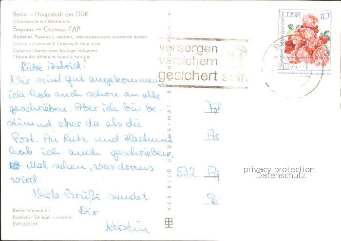 71939839 alte Postkarte BERLIN CITY Uraniasaeule Weltzeituhr postalisch gelaufen Erhaltung siehe scans KatCode: 11110011000000