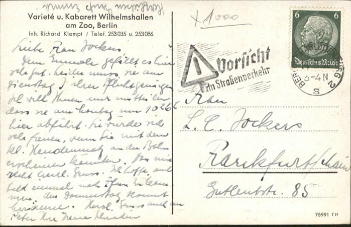 40988902 BERLIN CITY Variete und Kabarett Wilhelmshallen am Zoo postalisch gelaufen Alte Ansichtskarte Postkarte alte Postkarte Katcode 11110011000000