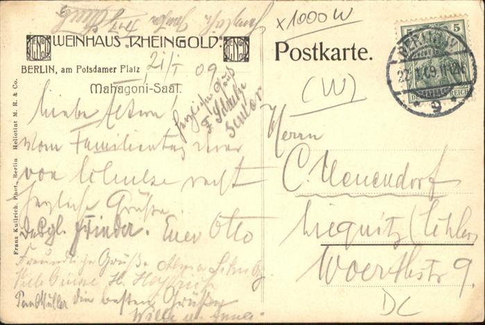 41038712 BERLIN CITY Weinhaus Rheingold postalisch gelaufen Alte Ansichtskarte Postkarte alte Postkarte Chri Katcode 11110011000000