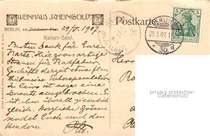 32730906 alte Postkarte BERLIN CITY Weinhaus Rheingold Kaiser Saal postalisch gelaufen Erhaltung siehe scans [WerneD78] KatCode: 11110011000000