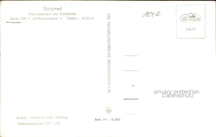 41574615 BERLIN CITY Weinrestaurant Stadtkueche Ganymed postalisch nicht gelaufen Erhaltung siehe scans Alte Ansichtskarte Postkarte hz_W Katcode 11110011000000