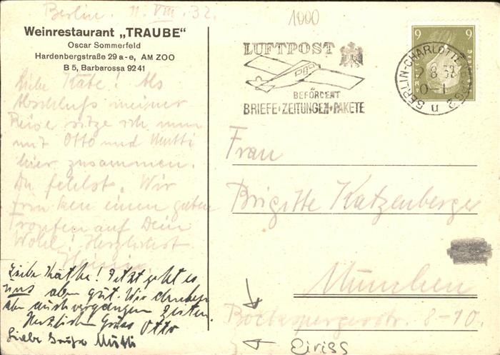 41288223 BERLIN CITY Weinrestaurant Traube postalisch gelaufen Erhaltung mit Maengel Alte Ansichtskarte Postkarte alte Postkarte hz_C Katcode 11110011000000