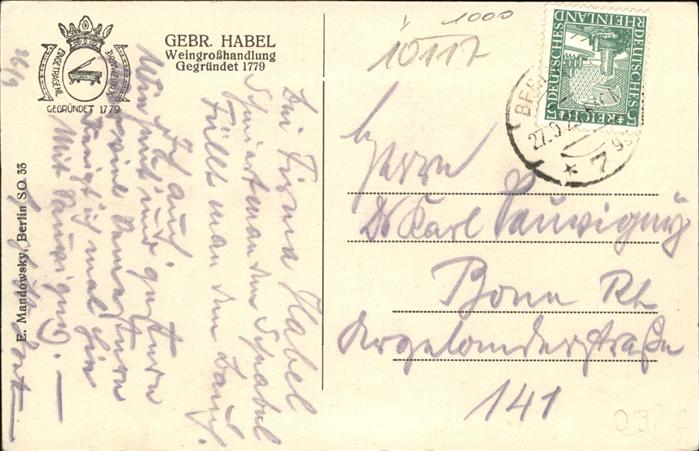40994881 BERLIN CITY Weinstuben Genossenschaft postalisch gelaufen Alte Ansichtskarte Postkarte alte Postkarte Katcode 11110011000000