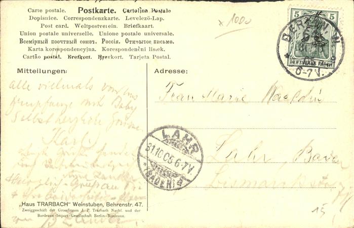 41391941 alte Postkarte BERLIN CITY Weinstuben Haus Trarbach Onxy-Saal postalisch gelaufen gute Erhaltung KatCode: 11110011000000