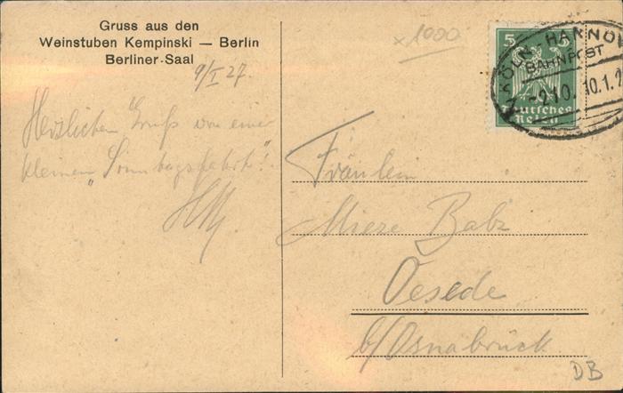 41400823 BERLIN CITY Weinstuben Kempinski Berliner Saal postalisch gelaufen gute Erhaltung Alte Ansichtskarte Postkarte alte Postkarte hz_F Katcode 11110011000000