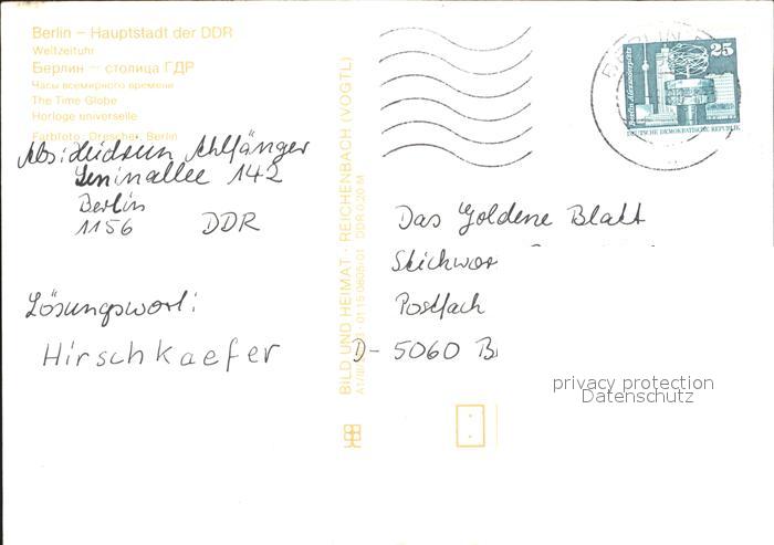 72379166 alte Postkarte BERLIN CITY Weltzeituhr postalisch gelaufen Erhaltung siehe scans KatCode: 11110011000000