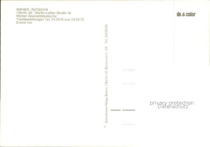 72063249 BERLIN CITY Wiener Rutschn Spezialitaetenrestaurant postalisch nicht gelaufen Erhaltung siehe scans KatCode: 11110011000000