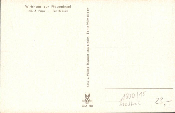 41403305 BERLIN CITY Wirtshaus zur Pfaueninsel A. Prinz Autos postalisch nicht gelaufen Alte Ansichtskarte Postkarte hz_L Katcode 11110011000000