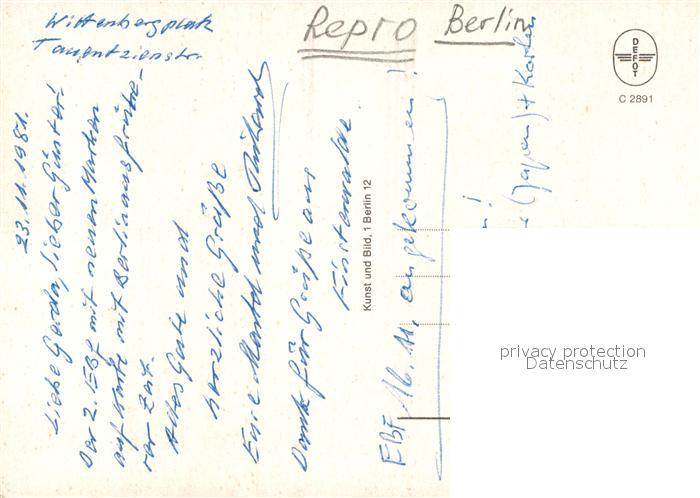 72935331 BERLIN CITY Wittenbergplatz Tauentziehnstrasse postalisch nicht gelaufen Erhaltung siehe scans [LiesaD40] KatCode: 11110011000000
