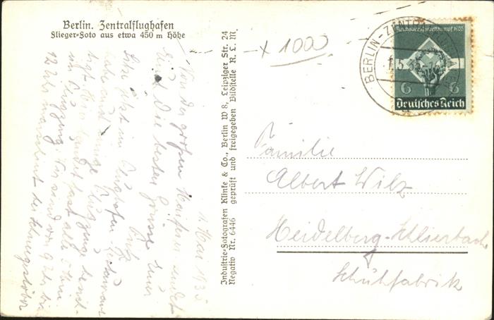 41241421 BERLIN CITY Zentralflughafen postalisch gelaufen gute Erhaltung Alte Ansichtskarte Postkarte alte Postkarte hz_C Katcode 11110011000000