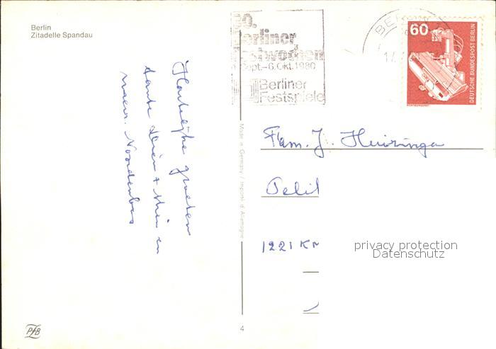 72283506 alte Postkarte BERLIN CITY Zitadelle Spandau postalisch gelaufen Erhaltung siehe scans KatCode: 11110011000000