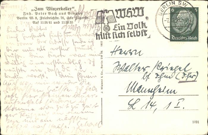 41221306 BERLIN CITY Zum Winzerrkeller postalisch gelaufen gute Erhaltung Alte Ansichtskarte Postkarte alte Postkarte hz_U Katcode 11110011000000