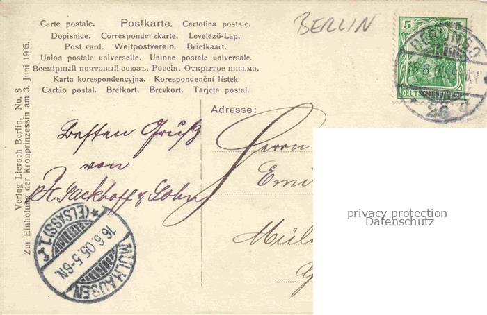 74010213 alte Postkarte BERLIN CITY Zur Einholung der Kronprinzessin am 3. Juni 1905 Festzug postalisch gelaufen Erhaltung siehe scans [FriedD77] KatCode: 11110011000000