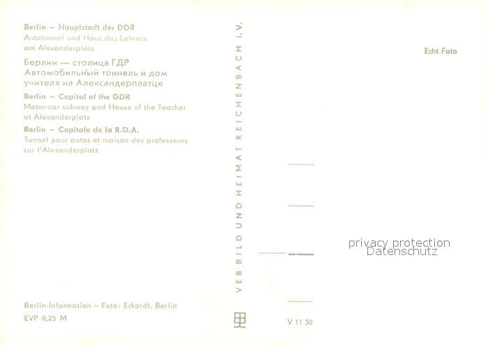 73144869 BERLIN DE Autotunnel Haus des Lehrers Alexanderplatz postalisch nicht gelaufen Erhaltung siehe scans [NatalD47] KatCode: 11110011000000