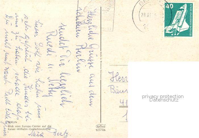 73164506 alte Postkarte BERLIN DE Blick vom Europa Center Kaiser Wilhelm Gedaechtsnis Kirche postalisch gelaufen Erhaltung siehe scans [KathaD81] KatCode: 11110011000000