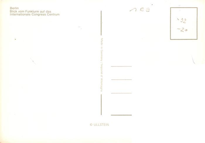73904445 BERLIN DE Blick vom Funkturm auf das Internationale Congress Centrum postalisch nicht gelaufen Erhaltung siehe scans [WerneD78] Wern Katcode 11110011000000