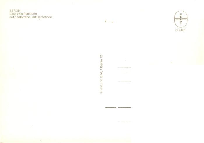 73904444 BERLIN DE Blick vom Funkturm auf Kantstrasse und Lietzensee postalisch nicht gelaufen Erhaltung siehe scans [WerneD78] Wern Katcode 11110011000000