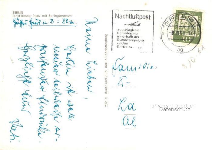 73149077 alte Postkarte BERLIN DE Ernst Reuter Platz mit Springbrunnen Hochhaus Nachtaufnahme postalisch gelaufen Erhaltung siehe scans [FriedD77] KatCode: 11110011000000