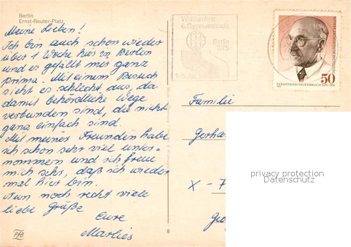 73242083 alte Postkarte BERLIN DE Ernst Reuter Platz postalisch gelaufen Erhaltung siehe scans [LiesaD40] KatCode: 11110011000000