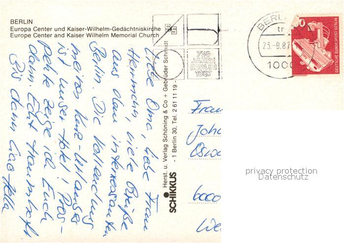 73204420 alte Postkarte BERLIN DE Europa Center Kaiser Wilhelm Gedaechtniskirche Nachtaufnahme postalisch gelaufen Erhaltung siehe scans [FriedD77] KatCode: 11110011000000
