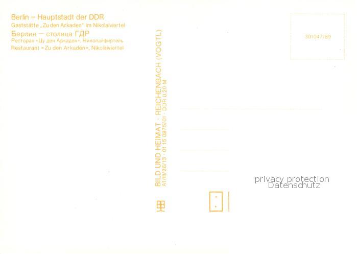73145106 BERLIN DE Gaststaette Zu den Arkaden Nikolaiviertel Fernsehturm Hauptstadt der DDR postalisch nicht gelaufen Erhaltung siehe scans [FriedD77] KatCode: 11110011000000