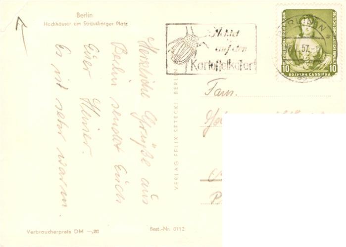 73871971 BERLIN DE Hochhaeuser am Strausberger Platz postalisch gelaufen Erhaltung siehe scans [WerneD78] alte Postkarte Wern Katcode 11110011000000