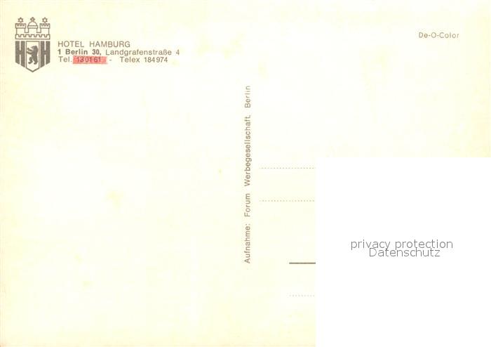 73155733 BERLIN DE Hotel Hamburg postalisch nicht gelaufen Erhaltung siehe scans [WerneD78] KatCode: 11110011000000