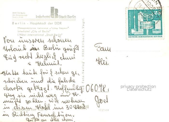73251293 alte Postkarte BERLIN DE Interhotel City of Berlin postalisch gelaufen Erhaltung siehe scans [KathaD81] KatCode: 11110011000000