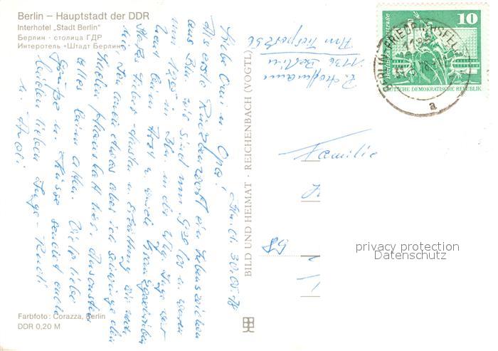 73168492 alte Postkarte BERLIN DE Interhotel Stadt Berlin postalisch gelaufen Erhaltung siehe scans [WerneD78] KatCode: 11110011000000