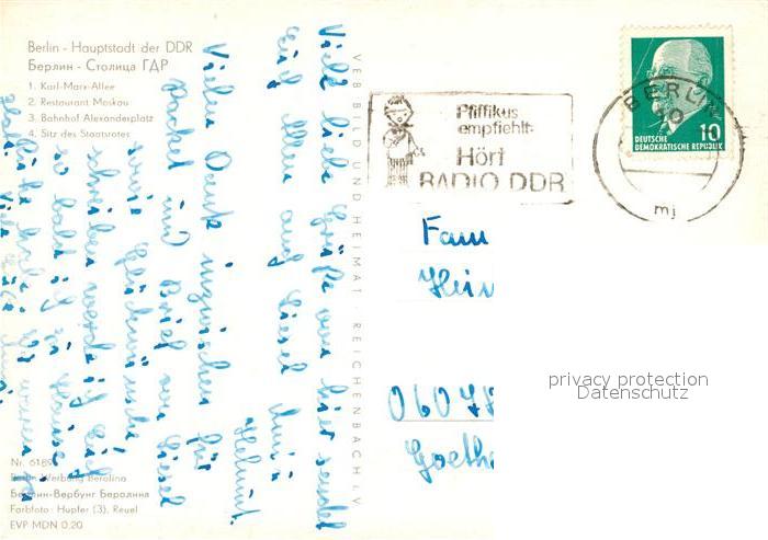 73251289 alte Postkarte BERLIN DE Karl Marx Allee Restaurant Moskau Bahnhof Alexanderplatz Sitz des Staatsrates postalisch gelaufen Erhaltung siehe scans [KathaD81] KatCode: 11110011000000