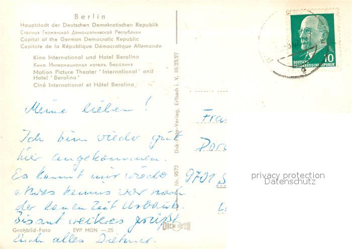 73167147 alte Postkarte BERLIN DE Kino International und Hotel Berolina postalisch gelaufen Erhaltung siehe scans [WerneD78] KatCode: 11110011000000